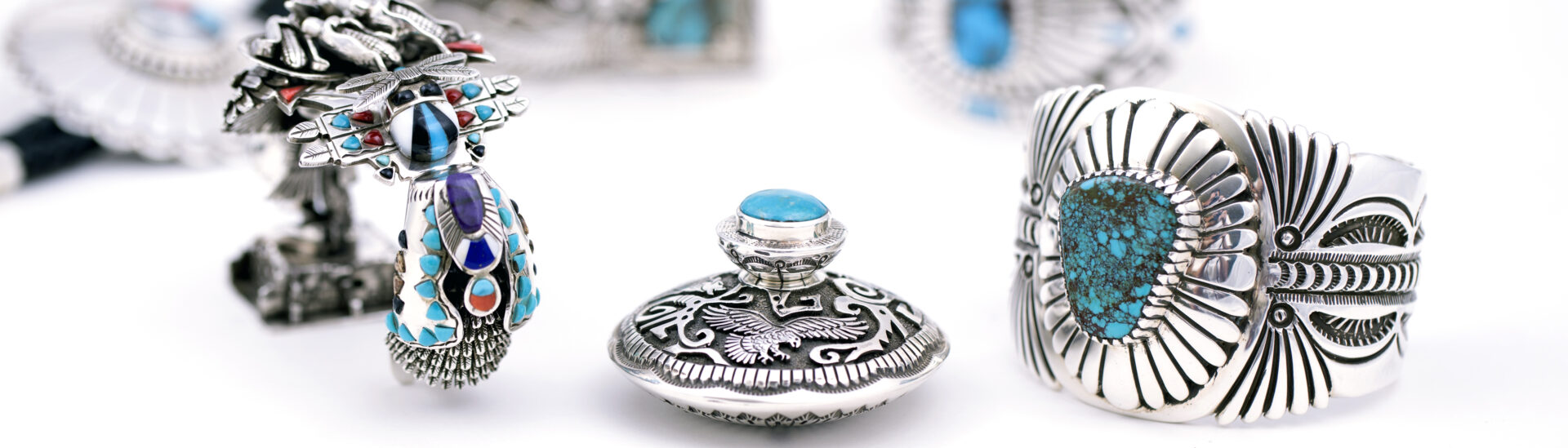 At Old Town Jewels we specialize in Native American jewelry. Our Native American artists Henry Yazzie and Sam Gray can create anything our customers dream up. We take pride in our special orders and want to ensure complete satisfaction. If you have a dream you want to see realized in Sterling Silver or gold, contact us today or visit us in Old Town Scottsdale! We have a large selection of stones for custom Native American jewelry, as well. Our silversmiths work on-site.